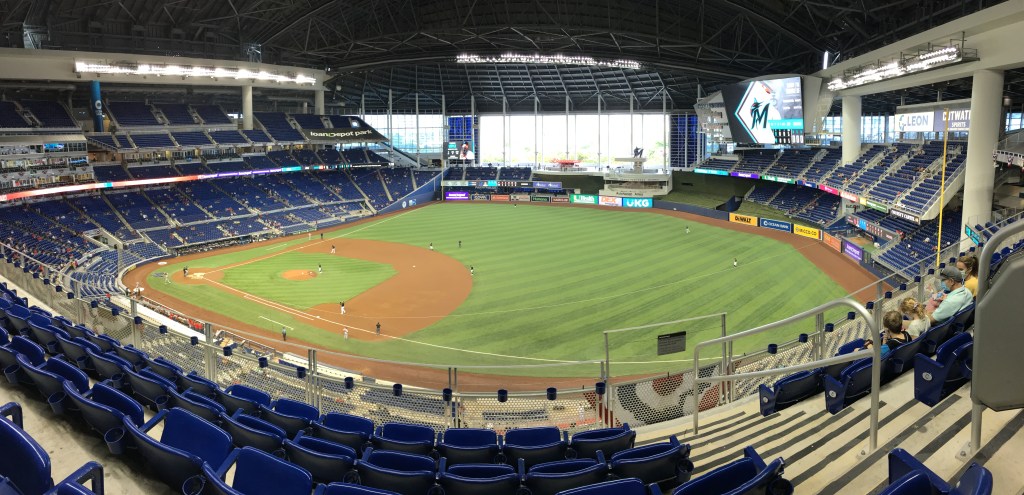 As for the the environment surrounding the game, the Marlins did well to provide a safe and socially-distant environment for the fans, even if some of the bozos attending the game weren’t quite as helpful as they could have been adhering to the mask protocol. The in-game hype crew could barely be heard, so once more people are there to get hyped, maybe they can turn the speakers up. The cashless policy throughout the stadium was fine, even if it’s a chore to use a card for even the smallest of purchases. I did find the staff to be clueless on the Marlins Rewards program, both on the mechanics of the program as well as what qualifies for points. Parking by Smartphone App was fine – and hey, a reduction to $15 (plus tax) is great – but given the small attendance, and the number of away fans, it might have been more effective and less confusing to collect money at the garage entrance.