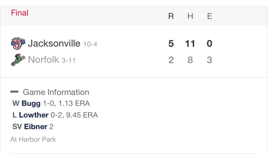 For Norfolk, McCoy and Nevin led the way with two hits apiece. Three errors hurt the Tides in the field. But hey, we’ll take it.