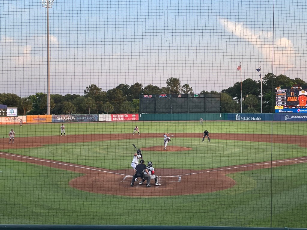 I found myself in Charleston, South Carolina on business last Wednesday. It happened to be the first time I had ever been to Charleston, so I was slightly disappointed to spend all day in meetings and miss out on seeing some of the history that the city has to offer. But, after the work day was done, I found the second best way to enjoy the city: a ballgame at “The Joe” to see the Charleston RiverDogs take on the Fayetteville Woodpeckers.