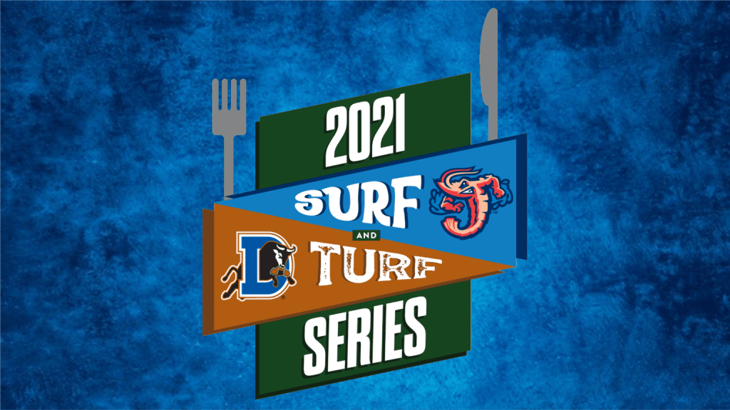 As this blog pointed out prior to the start of the season, playing 36 games against some opponents this season would be a bit of a chore for the Jumbo Shrimp and fans alike. It’s tough seeing the same teams and same players again and again without getting slightly complacent. Thankfully, the marketing geniuses in both Jacksonville and Durham put their thinking caps on and decided to have some fun with their new rivalry. They have given us the “2021 Surf and Turf Series.”