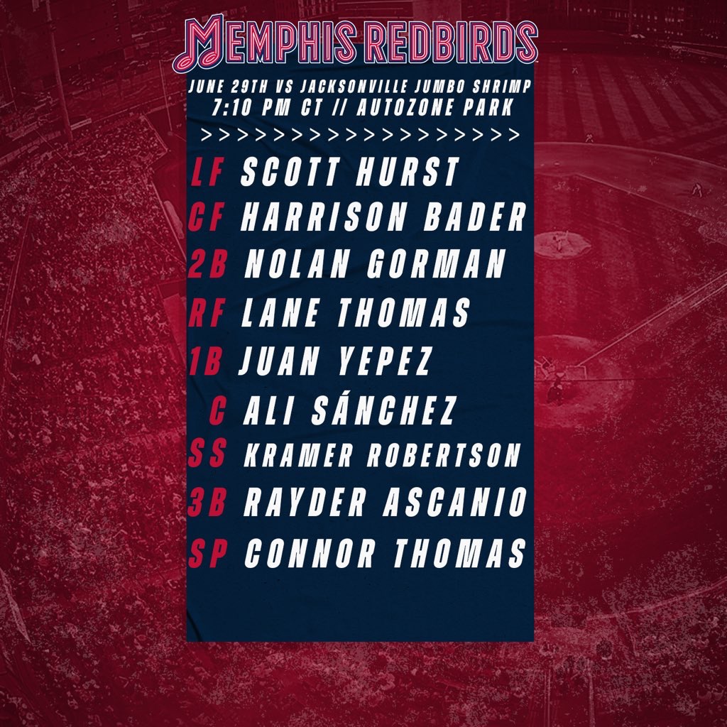 As for the Redbirds, they have major leaguer Harrison Bader starting on a rehab assignment. They also feature 2B Nolan Gorman – one of the Cardinals’ top prospects – making his Triple-A debut.