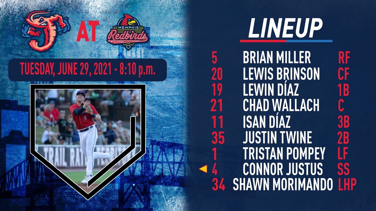 A familiar looking lineup for the Shrimp. But still no Brigman. Wherever might he be? Is he injured? Or is he just making way for whichever player might have been sent down by the Marlins? He’s been the best Shrimp player over the past month. He should be on the field.